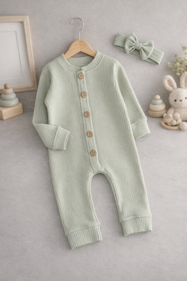 Descoperă confortul și siguranța pentru bebelușul tău cu această adorabilă salopetă din bumbac, ideală pentru pielea sensibilă. Fabricată cu grijă în Turcia, setul include o bentiță asortată, perfectă pentru a completa ținuta.