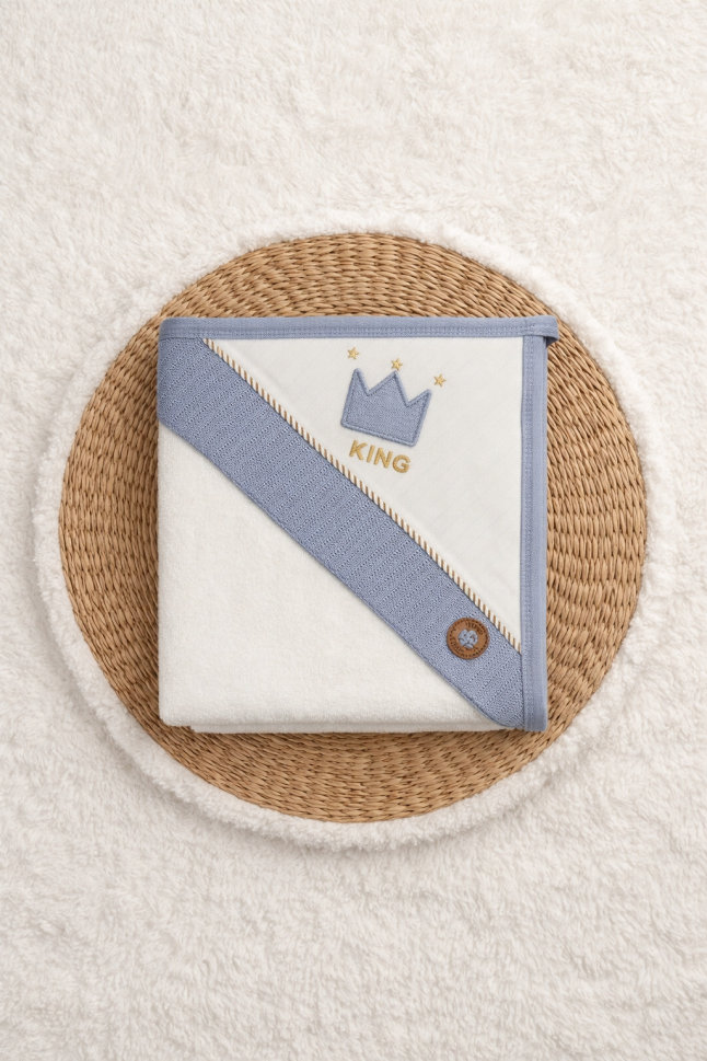 - Bumbac 100%: Realizat din bumbac natural de înaltă calitate, prosopul este extrem de moale, absorbant și delicat cu pielea bebelușului.