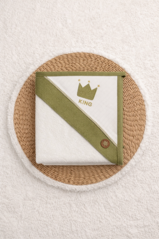 - Bumbac 100%: Realizat din bumbac natural de înaltă calitate, prosopul este extrem de moale, absorbant și delicat cu pielea bebelușului.