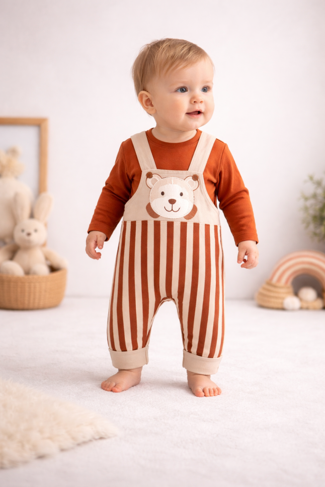 Introduceți-l pe cel mic în lumea confortului și a siguranței cu setul nostru adorabil format din salopette și hanorac, perfect pentru bebelușii cu vârste cuprinse între 6 și 24 de luni! Fabricat cu grijă și atenție la detalii, acest set este ideal pentru joacă, plimbări sau pur și simplu pentru relaxare acasă.