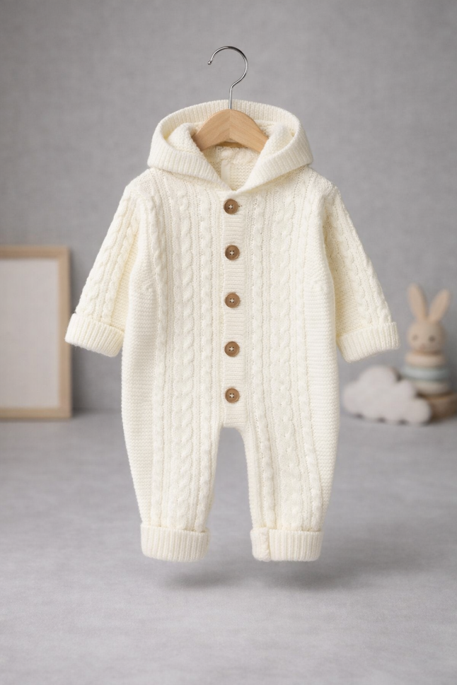 Confortabilă și practică: Salopeta tricotată este concepută pentru a oferi confort maxim bebelușului tău. Materialul moale și flexibil permite libertate de mișcare, ideală pentru joacă și explorare.