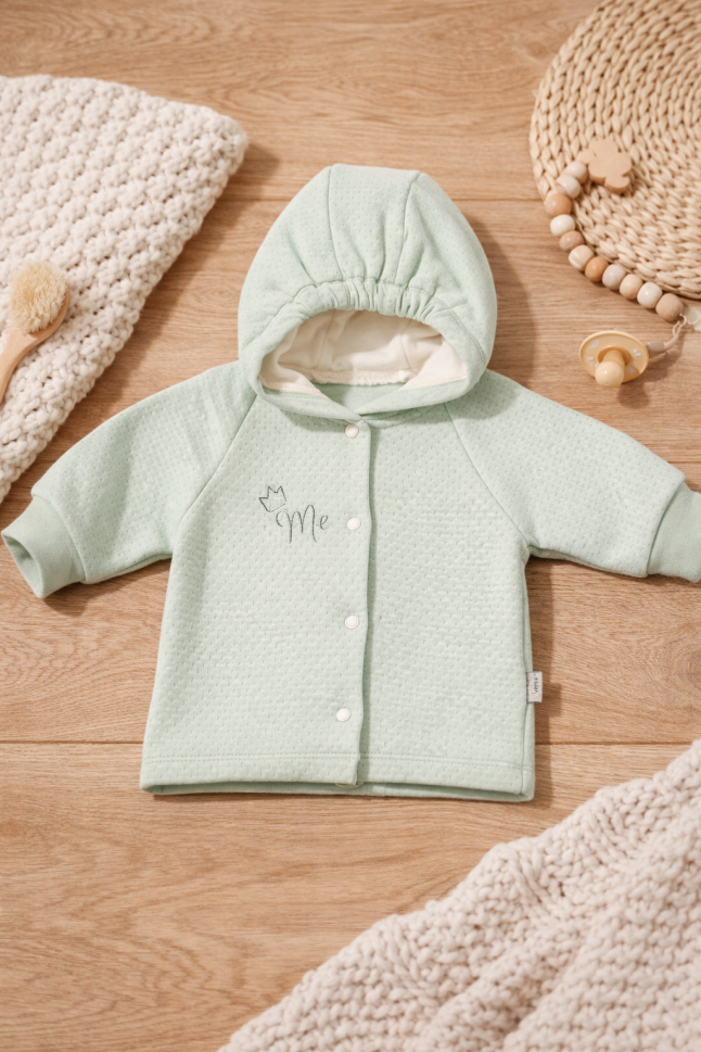 Introduceți-l pe cel mic în lumea confortului și a stilului cu acest adorabil cardigan cu glugă, perfect pentru bebelușii cu vârste cuprinse între 0 și 9 luni! Fabricat cu grijă și atenție la detalii în Turcia, acest cardigan este un must-have în garderoba oricărui bebeluș.