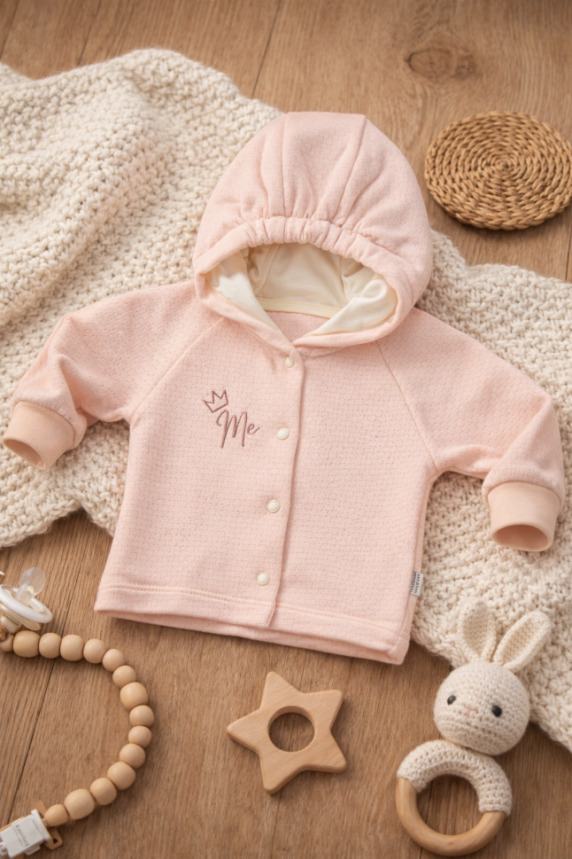 Introduceți-l pe cel mic în lumea confortului și a stilului cu acest adorabil cardigan cu glugă, perfect pentru bebelușii cu vârste cuprinse între 0 și 9 luni! Fabricat cu grijă și atenție la detalii în Turcia, acest cardigan este un must-have în garderoba oricărui bebeluș.