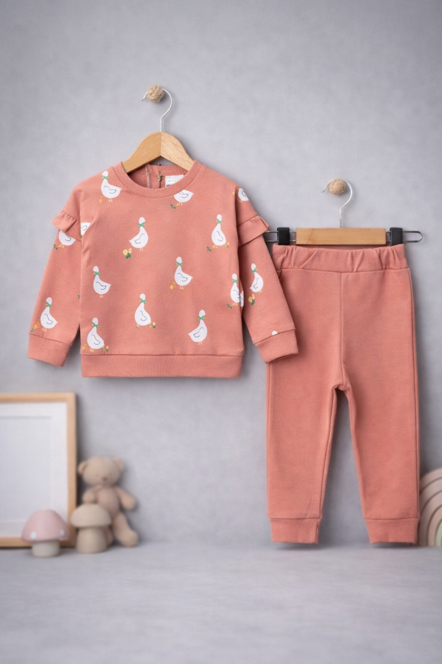Descoperă setul perfect pentru bebelușul tău! Fabricat în Turcia din bumbac 100%, acest set include un hanorac și pantaloni confortabili din țesătură jersey.
