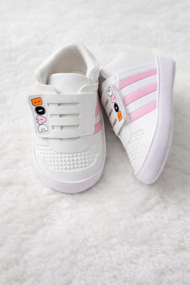 Descoperiți confortul și siguranța pentru picioarele delicate ale bebelușului dumneavoastră cu această pereche de încălțăminte adorabilă, fabricată 100% în Turcia. Disponibilă în mărimile 17 (0-3 luni) și 18 (3-6 luni), aceasta este ideală pentru primele luni de viață.