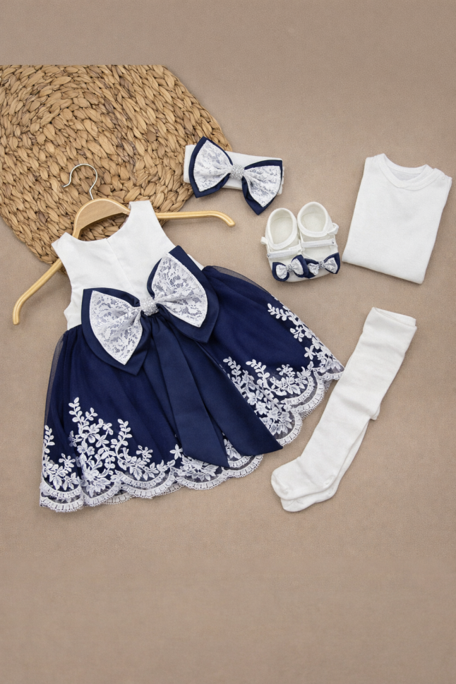SET DE BOTEZ BABYLIA CU PIATRĂ ȘI DANTELĂ 0-3 LUNI  A55