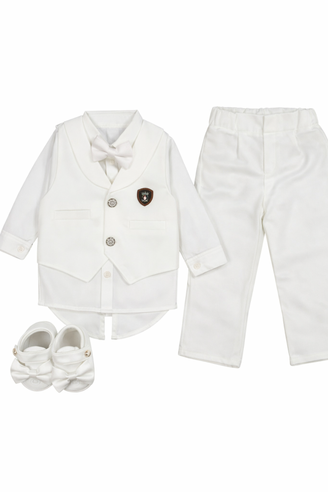 - Papion: Un papion adorabil, care completează perfect look-ul festiv, transformând bebelușul într-un adevărat gentleman.