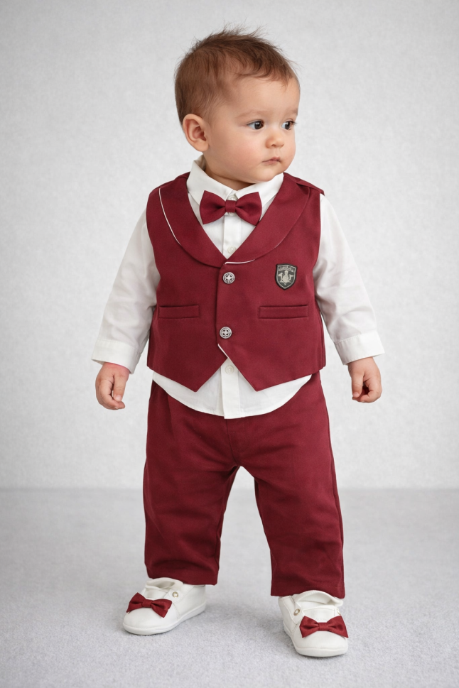 - Papion: Un papion adorabil, care completează perfect look-ul festiv, transformând bebelușul într-un adevărat gentleman.