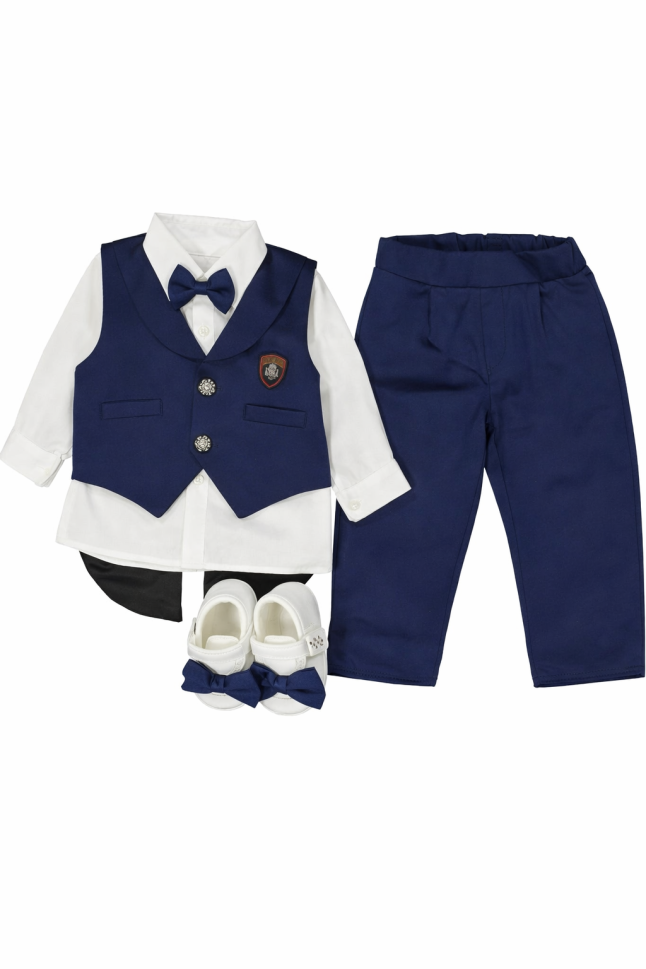 • Papion: Un papion adorabil, care completează perfect look-ul festiv, transformând bebelușul într-un adevărat gentleman.