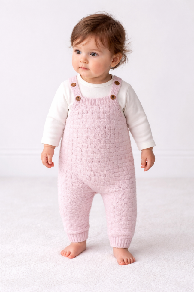 - Un salop/combinezon tricotat, moale și călduros, perfect pentru zilele mai răcoroase. Designul său elegant și materialul delicat vor face ca micuțul tău să arate adorabil.