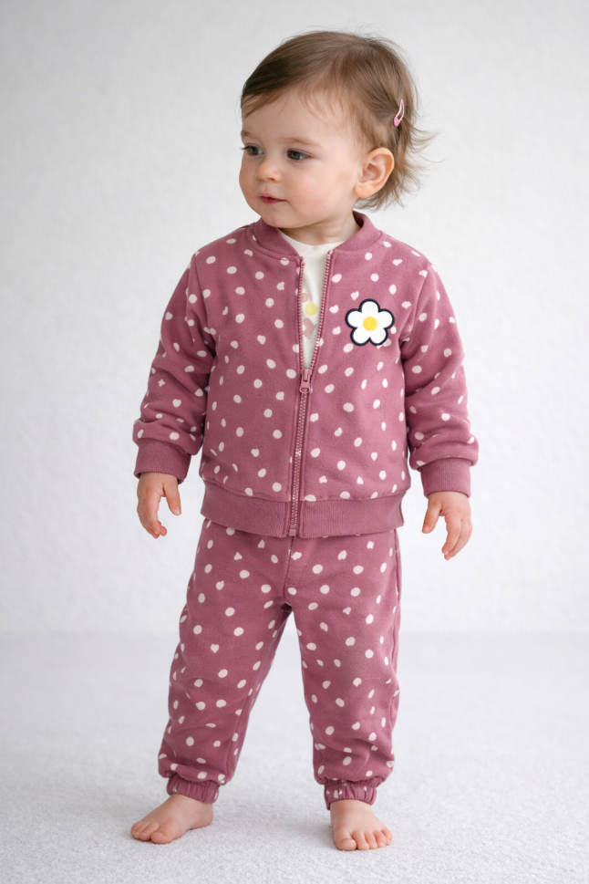Setul este disponibil în mărimile 6-9-12-18 luni, asigurând o potrivire perfectă pe măsură ce bebelușul crește. Țesătura jersey oferă o flexibilitate excelentă, permițând bebelușului să se miște liber și confortabil. Fiecare piesă a fost concepută pentru a fi ușor de îmbrăcat și dezbrăcat, simplificând rutina zilnică a părinților.