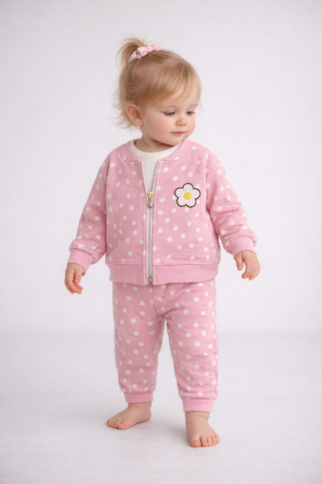 Setul este disponibil în mărimile 6-9-12-18 luni, asigurând o potrivire perfectă pe măsură ce bebelușul crește. Țesătura jersey oferă o flexibilitate excelentă, permițând bebelușului să se miște liber și confortabil. Fiecare piesă a fost concepută pentru a fi ușor de îmbrăcat și dezbrăcat, simplificând rutina zilnică a părinților.