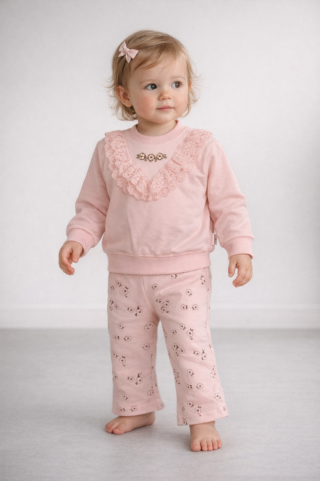 Compleul perfect pentru micuțul tău, combinând confortul suprem cu siguranța și stilul! Acest set adorabil, format dintr-un hanorac moale și pantaloni asortați, este ideal pentru joacă, plimbări sau pur și simplu pentru relaxare acasă.