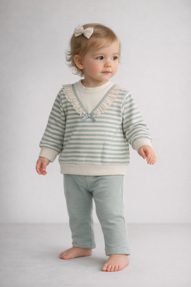 Descoperă confortul și siguranța setului nostru adorabil pentru bebeluși, perfect pentru pielea sensibilă! Fabricat în Turcia din bumbac 100%, acest set include un hanorac călduros și pantaloni asortați.