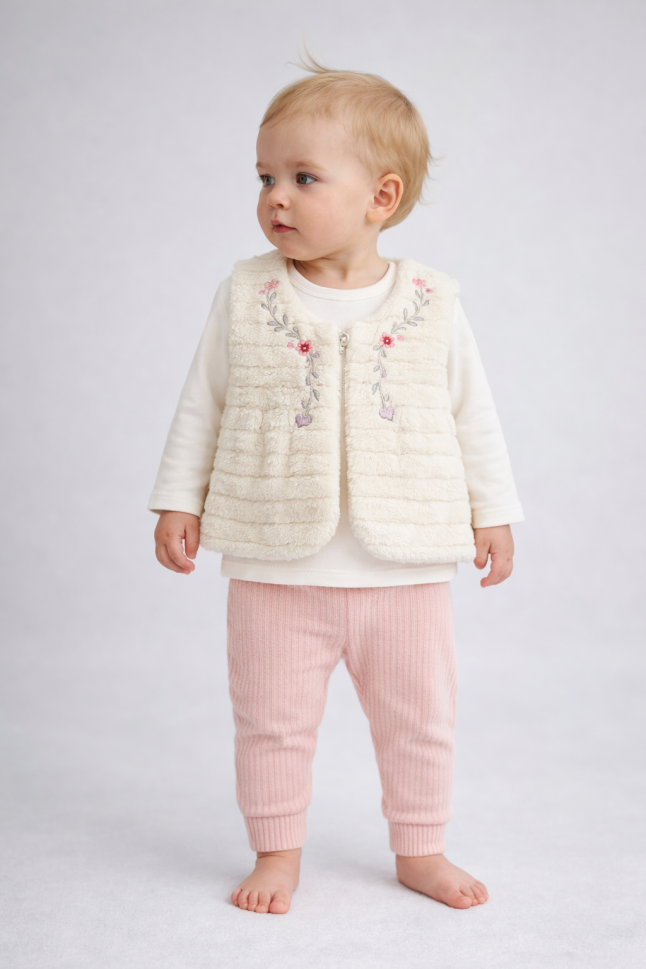 - Vestă: O vestă confortabilă, perfectă pentru a menține bebelușul cald în zilele răcoroase.