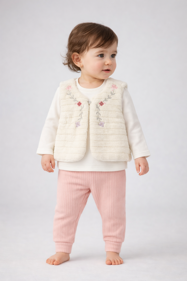 Vestă de pluș ELCI 6-18 luni, set 3 piese A38