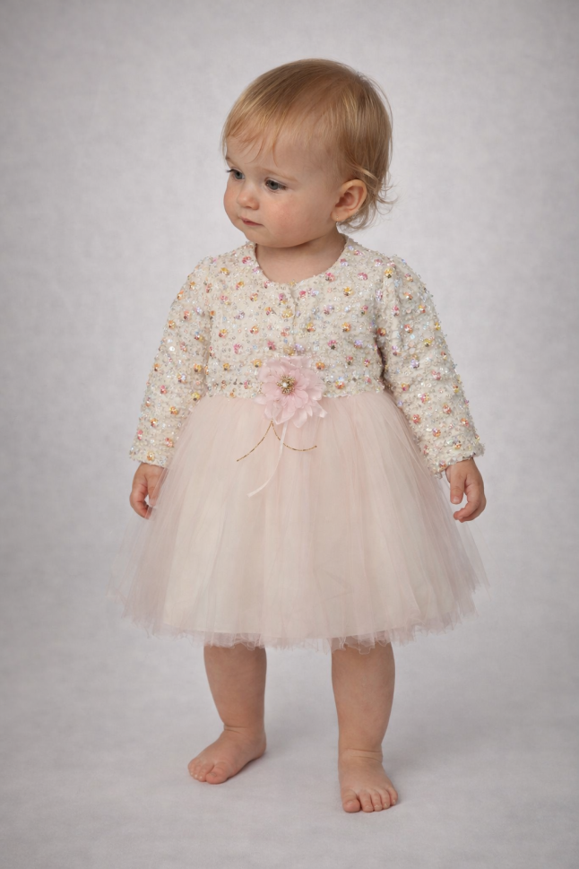 Descoperă eleganța și confortul rochiței pentru bebeluși, perfectă pentru micuța ta! Setul include o rochie adorabilă și un bolero asortat, ideal pentru ocazii speciale sau pentru un look chic de zi cu zi.