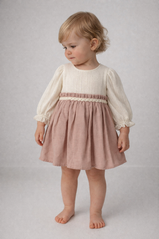 Rochița este concepută pentru a fi ușor de purtat și întreținut. Este disponibilă în mărimile: 9-12 luni, 12-18 luni, 18-24 luni, asigurând o potrivire perfectă pe măsură ce micuța ta crește.