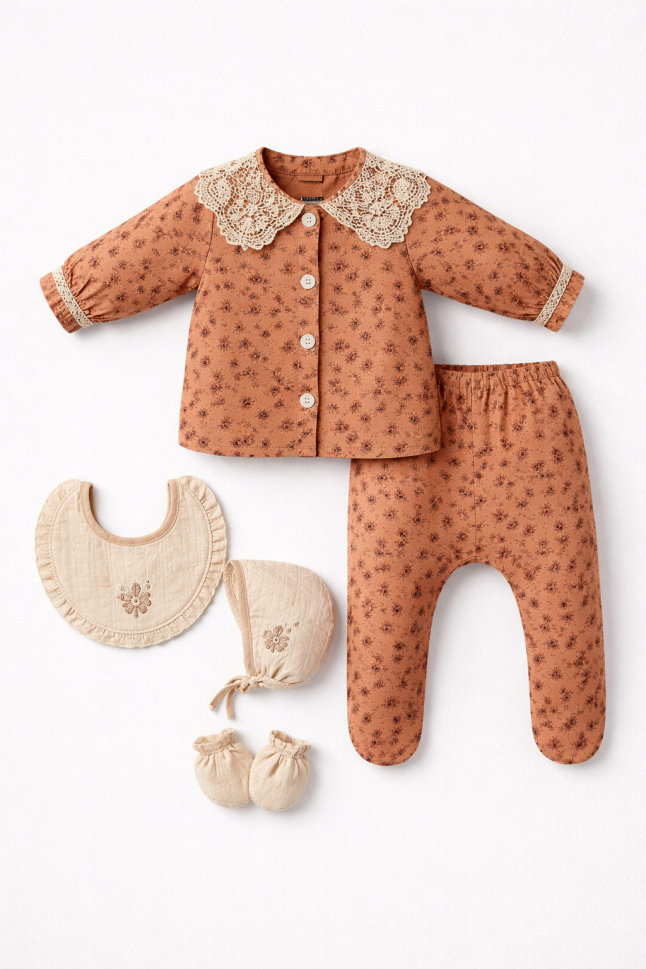 Îmbracă-ți micuțul cu delicatețe și confort cu acest set adorabil din muselină, perfect pentru bebelușii cu vârsta cuprinsă între 0 și 3 luni. Fabricat cu grijă în Turcia, acest set este conceput pentru a oferi o experiență blândă și sigură pentru pielea sensibilă a bebelușului tău.