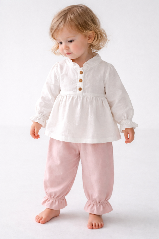 Descoperă confortul absolut pentru micuțul tău cu acest set de muselină, perfect pentru pielea sensibilă! Fabricat în Turcia din bumbac 100%, acest set de 2 piese (bluză și pantalon) asigură o experiență plăcută la purtare.