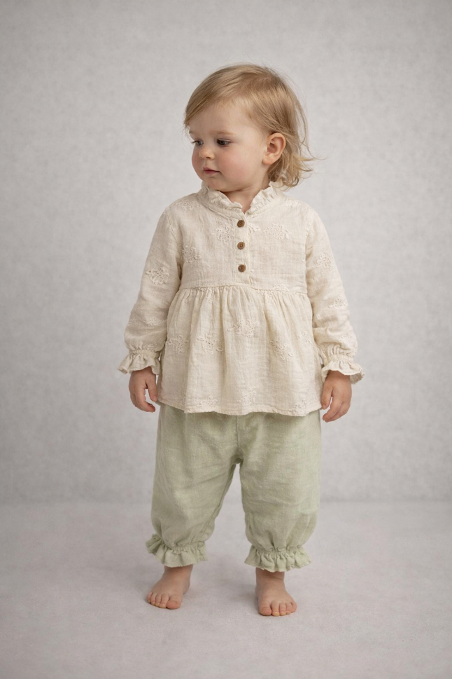 Descoperă confortul absolut pentru micuțul tău cu acest set de muselină, perfect pentru pielea sensibilă! Fabricat în Turcia din bumbac 100%, acest set de 2 piese (bluză și pantalon) asigură o experiență plăcută la purtare.