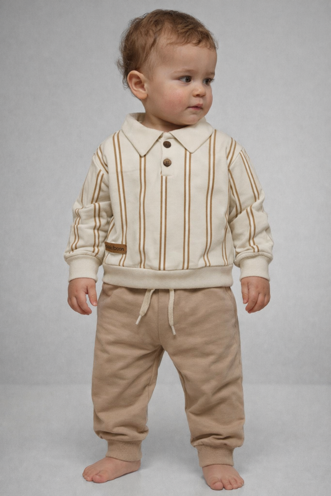 Introduceți-l pe micuțul dumneavoastră în lumea confortului și a stilului cu acest set adorabil format din hanorac și pantaloni, perfect pentru bebelușii cu vârste cuprinse între 9 și 24 de luni! Fabricat cu dragoste și atenție la detalii în Turcia, acest set este alegerea ideală pentru părinții care pun preț pe calitate și siguranță.