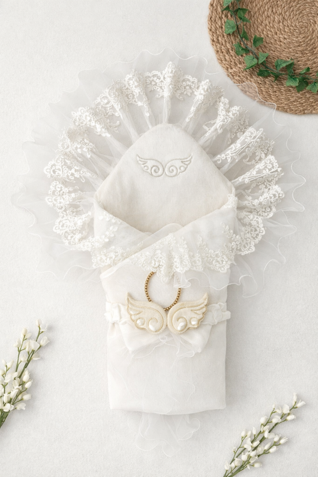 Tomurcuk – păturică de înfășat elegantă, cu aripi de înger A95