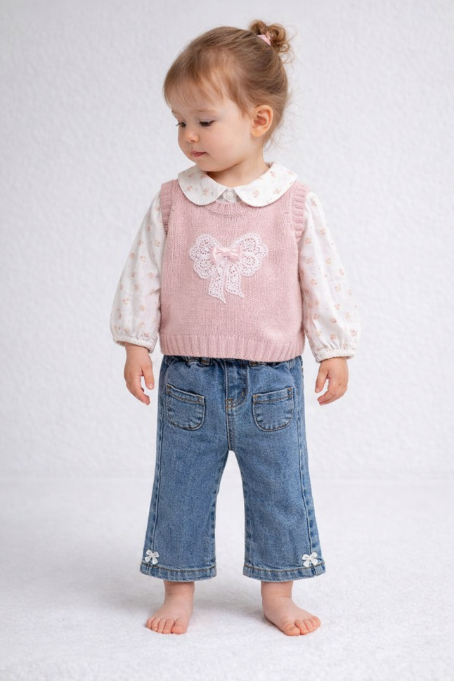 Descoperă setul perfect pentru micuțul tău! Fabricat în Turcia din bumbac 100%, acest set adorabil include o cămașă confortabilă, un pulover călduros și blugi stilați.