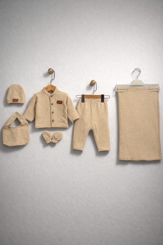 * Fabricat din bumbac tip waffle, moale și delicat * Nu conține substanțe cancerigene sau alergene * Include pătură, body, pantaloni, bavetă, căciulă și mănuși * Ideal pentru nou-născuți (0-3 luni) * Fabricat în Turcia