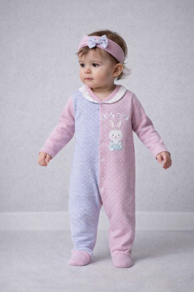 Fabricat în Turcia, setul include o salopetă practică și o cataramă asortată, ambele realizate din material jersey moale și plăcut la atingere. Ușor de întreținut, se spală la mașină la 30°C.- Vârsta: 3-6-9 luni