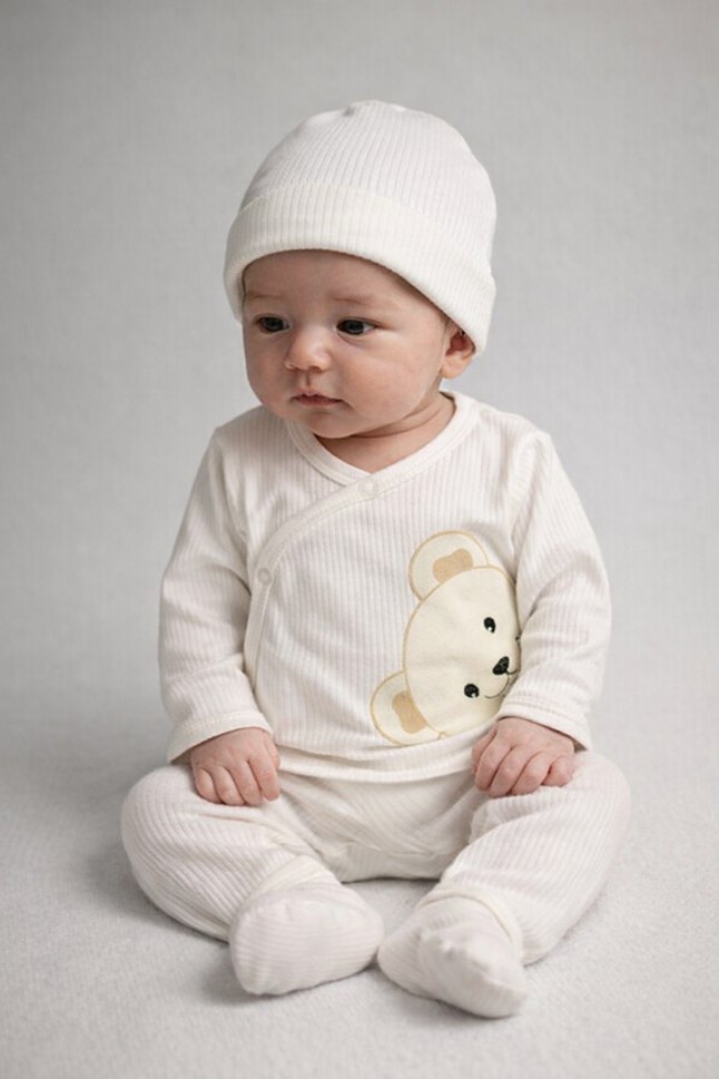 Descoperiți confortul suprem pentru bebelușul dumneavoastră cu acest set adorabil, perfect pentru primele 3 luni! Fabricat cu dragoste în Turcia, acest set este confecționat din bumbac moale, asigurând o atingere delicată pe pielea sensibilă a bebelușului.