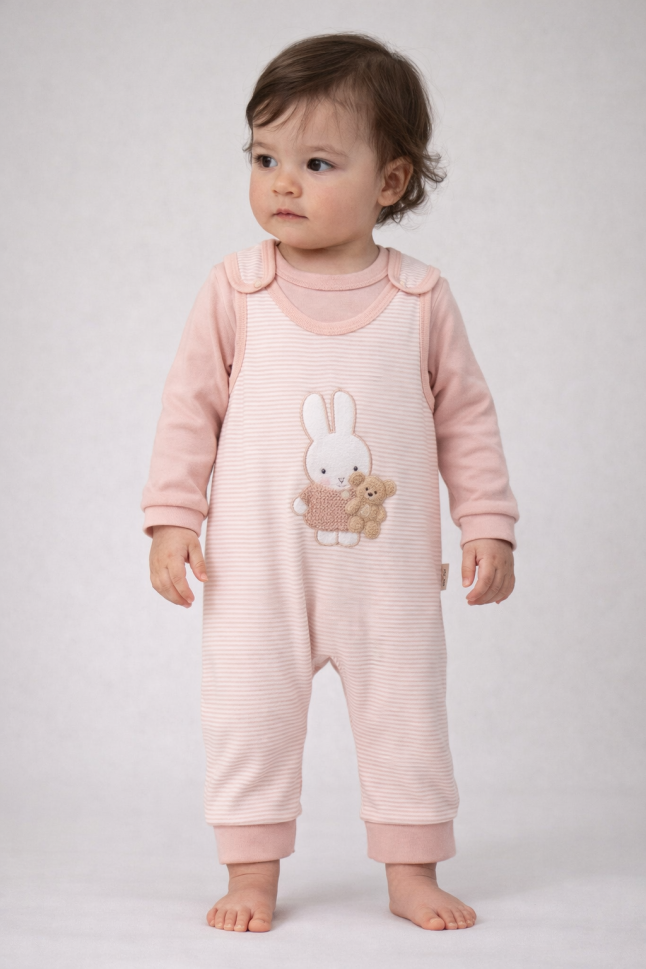 Salopetă confortabilă pentru bebeluși, ideală pentru pielea sensibilă a celor mici! Fabricată din bumbac de înaltă calitate, salopeta este delicată și respirabilă, asigurând confortul bebelușului tău pe tot parcursul zilei.