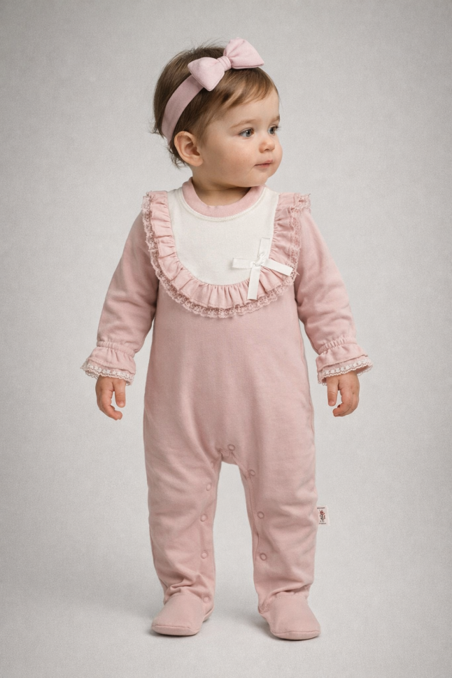 BYMURAT Salopetă 3–12 luni cu guler din dantelă A25