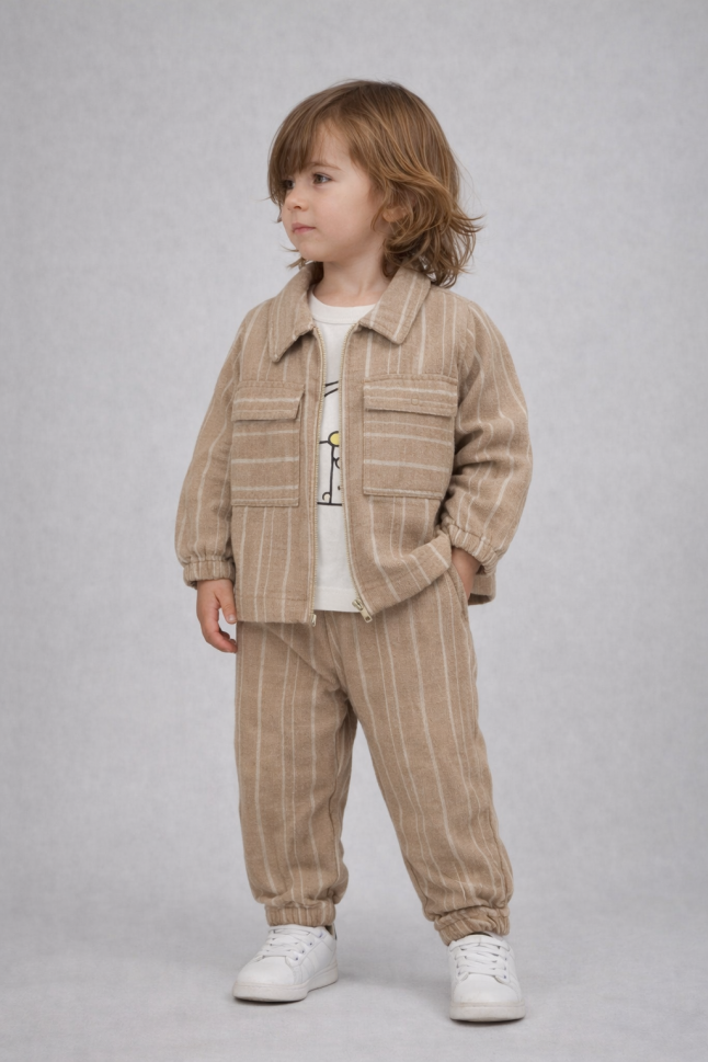 Descoperă setul perfect pentru micuțul tău, ideal pentru vârstele 1-2-3 ani! Fabricat cu grijă în Turcia, acest set include o jachetă adorabilă, un body confortabil și pantaloni din bumbac moale.