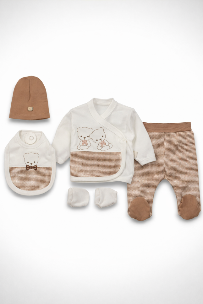 Îmbracă-ți micuțul cu delicatețe și confort cu acest set adorabil, perfect pentru primele luni de viață! Fabricat cu dragoste și atenție în Turcia, acest set complet asigură o atingere blândă asupra pielii sensibile a bebelușului tău.