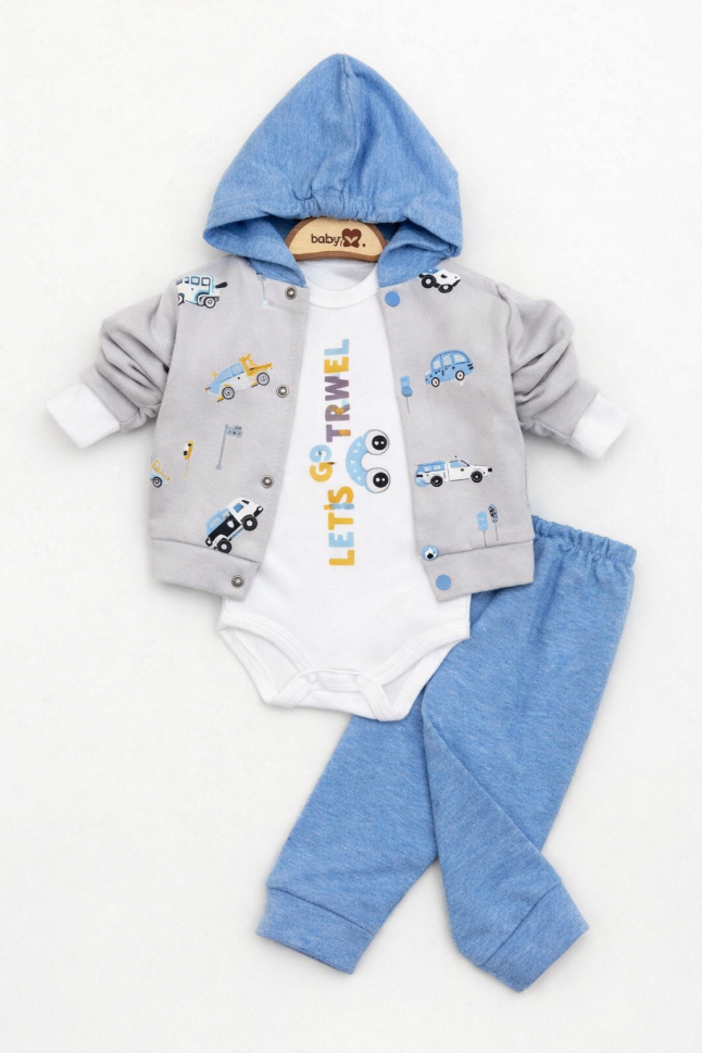 Set de 3 piese cu glugă, cu tematică de mașină, pentru bebeluși 3/9 luni A33
