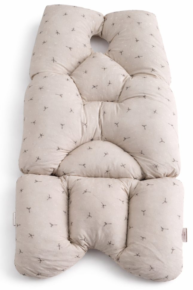 Design ergonomic inteligent: Forma ergonomică a pernei, în special la nivelul capului, este concepută pentru a preveni mișcarea laterală a capului bebelușului, oferind un suport optim și reducând riscul de disconfort sau iritații.