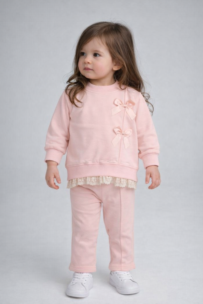 Costum din două piese BYMURAT 9/24 luni cu două funde din ghipură A28