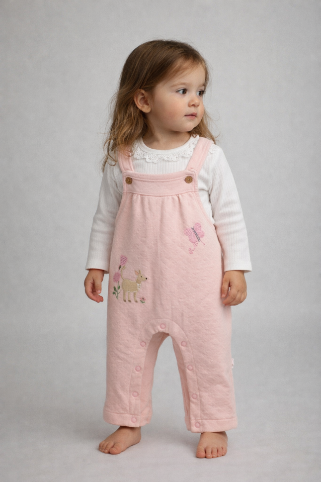 Descoperă setul perfect pentru micuțul tău! Fabricat cu grijă în Turcia, acest set adorabil include un body din jerseu de bumbac moale și o salopetă matlasată confortabilă.