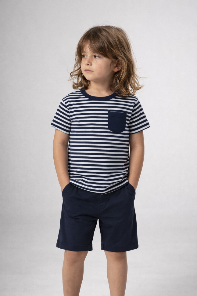 Memoza Set pentru Băieți 2–5 Ani, cu Pantaloni Capri, Dungi și Buzunare A20
