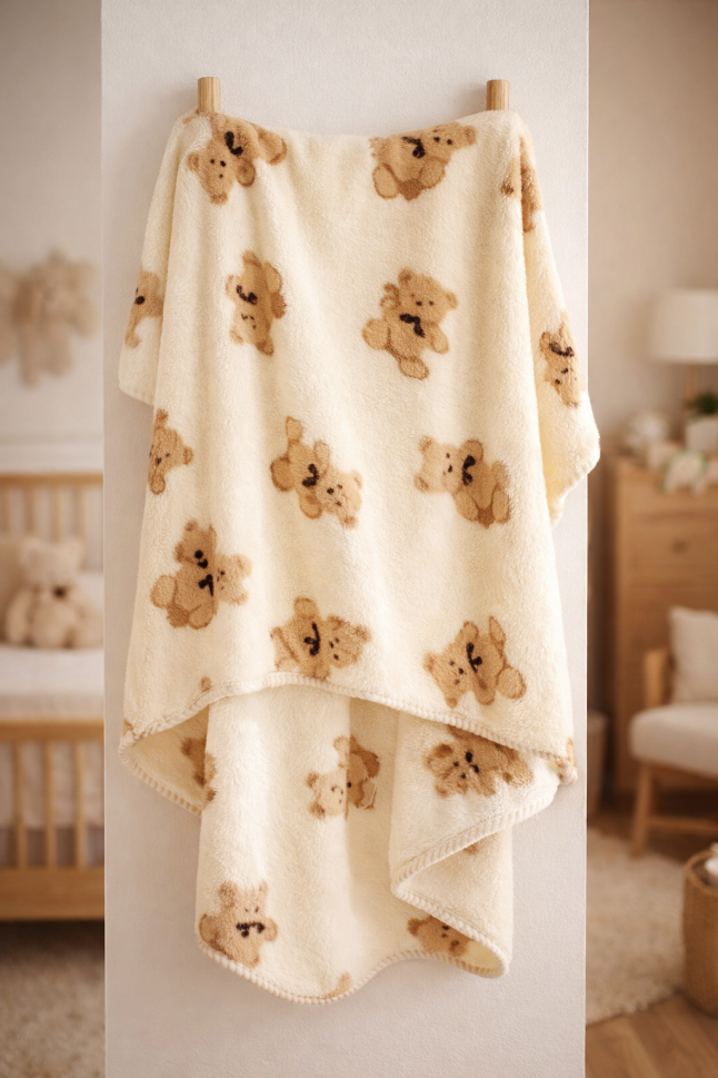 Bebitof Pătură din Pluș pentru Bebeluși 0–18 Luni, cu Model Urs A36
