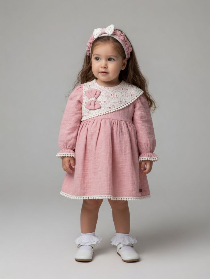 Rochie Amante cu guler din dantelă 6-24 luni A47
