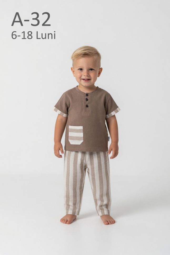 ÇITIR Set băieți 6–18 luni din in cu dungi