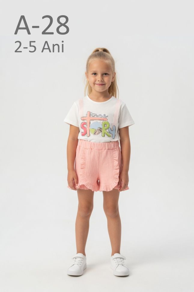 DODO MIDO Set fete 2–5 ani cu șort din muselină, imprimeu și aplicații cu pietre