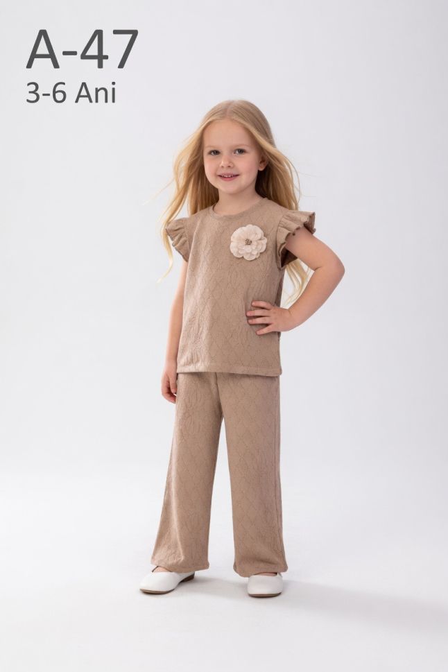 Setul tricotat pentru fete din două piese oferă un echilibru perfect între eleganță și confort. Fabricat din bumbac 100%, permite pielii să respire și este potrivit pentru pielea sensibilă. Materialul moale tip tricot asigură o purtare plăcută pe tot parcursul zilei. Este ideal atât pentru utilizarea zilnică, cât și pentru ocazii speciale.