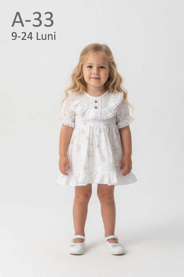 Ideală pentru cei care caută rochii pentru bebeluși, haine din bumbac, rochii elegante pentru fete, ținute pentru ocazii speciale sau îmbrăcăminte confortabilă pentru copii. Fabricată în Turcia, respectă standarde ridicate de calitate și oferă siguranță, durabilitate și confort.