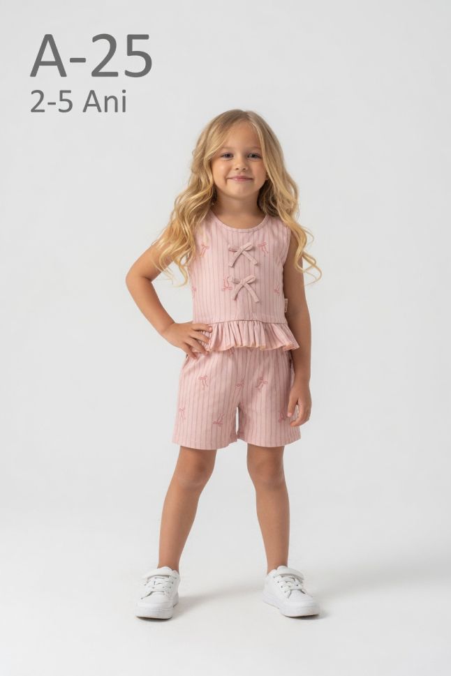 Setul pentru fete din două piese, format din tricou și pantaloni scurți, este ideal pentru sezonul cald. Fabricat din bumbac 100%, permite pielii să respire și este potrivit pentru pielea sensibilă. Materialul moale și ușor oferă confort pe tot parcursul zilei. Este o alegere practică și stilată pentru utilizarea zilnică.