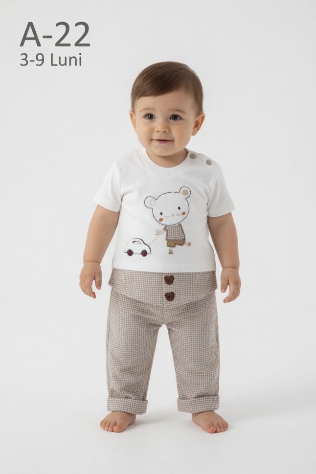 Ideal pentru cei care caută seturi pentru bebeluși, haine din bumbac, îmbrăcăminte confortabilă pentru bebeluși sau ținute casual. Fabricat în Turcia, produsul respectă standarde înalte de calitate și oferă siguranță, confort și durabilitate.