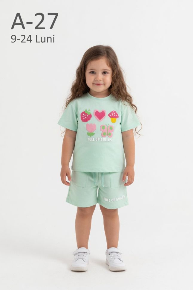 Acest set pentru fetițe din două piese este alegerea ideală pentru sezonul cald, oferind un echilibru perfect între confort și design atractiv. Setul este compus din tricou și pantaloni scurți, fiind potrivit pentru utilizarea zilnică.