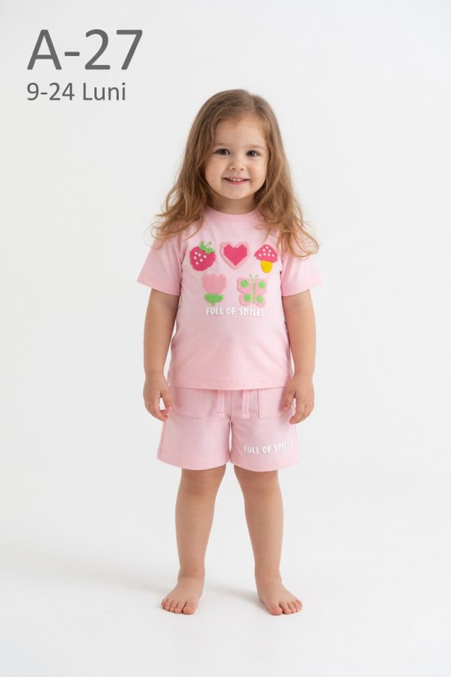 Acest set pentru fetițe din două piese este alegerea ideală pentru sezonul cald, oferind un echilibru perfect între confort și design atractiv. Setul este compus din tricou și pantaloni scurți, fiind potrivit pentru utilizarea zilnică.